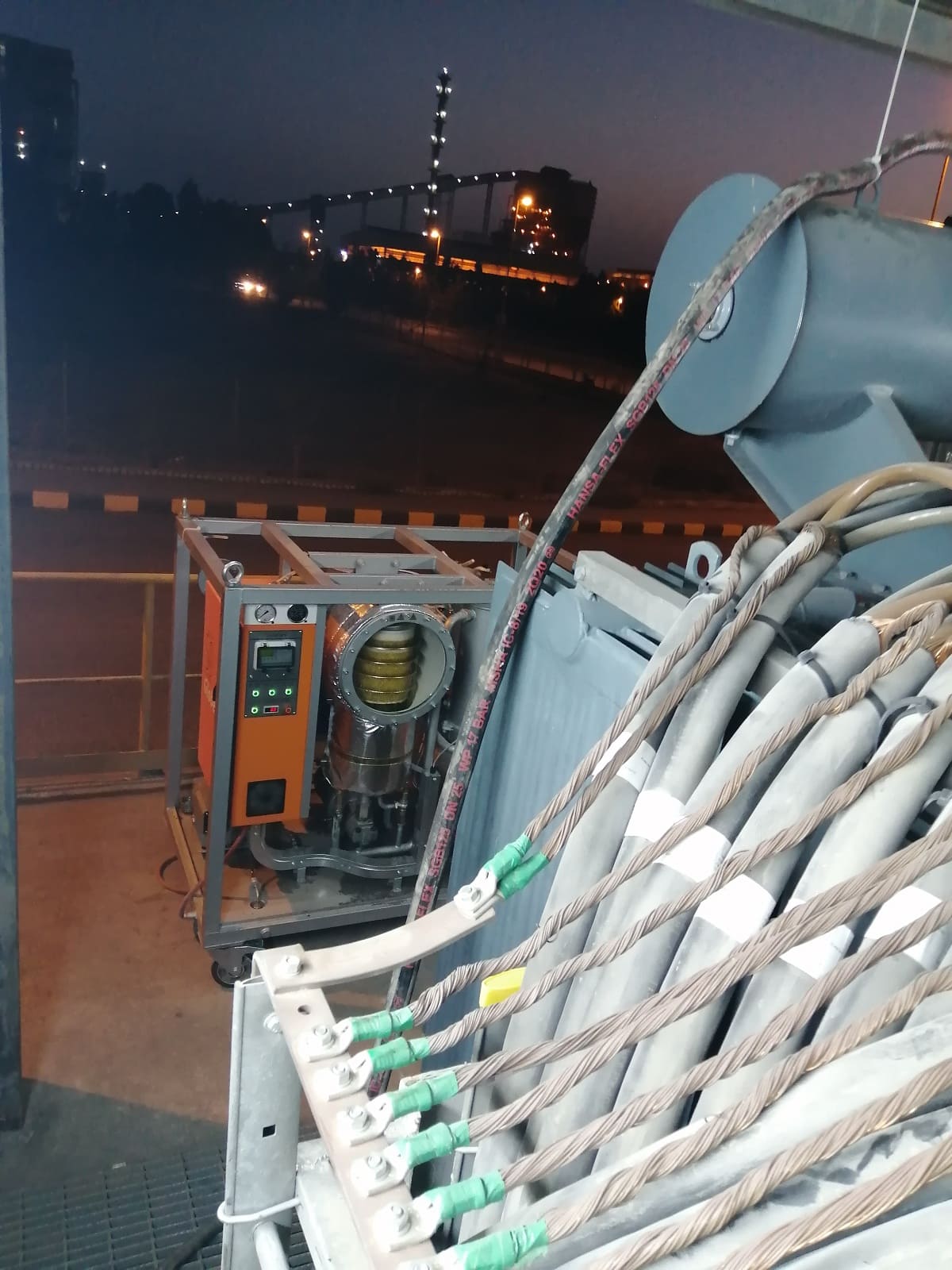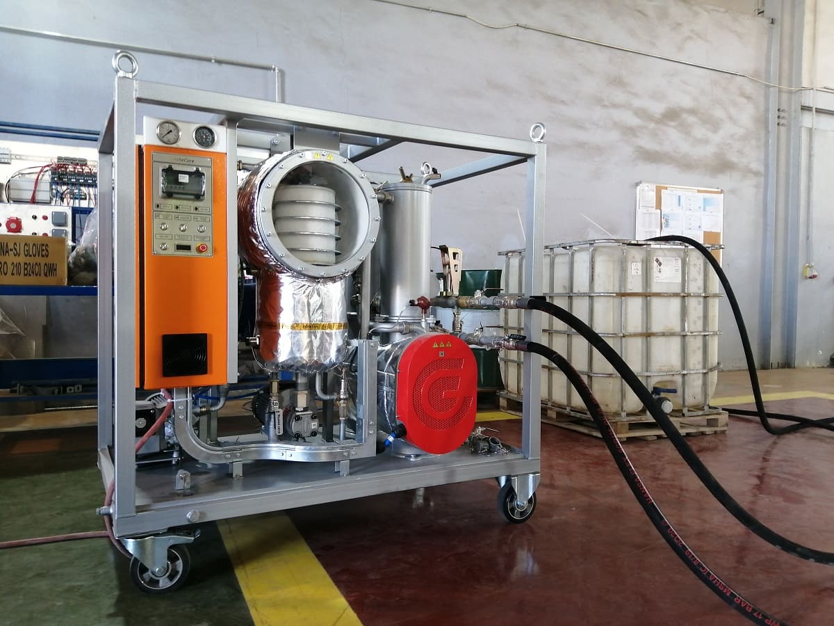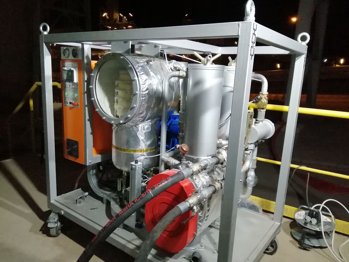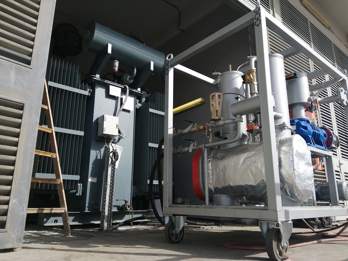 This device can heat oil-filled electrical equipment with hot transformer oil and evacuate air from vacuum systems.