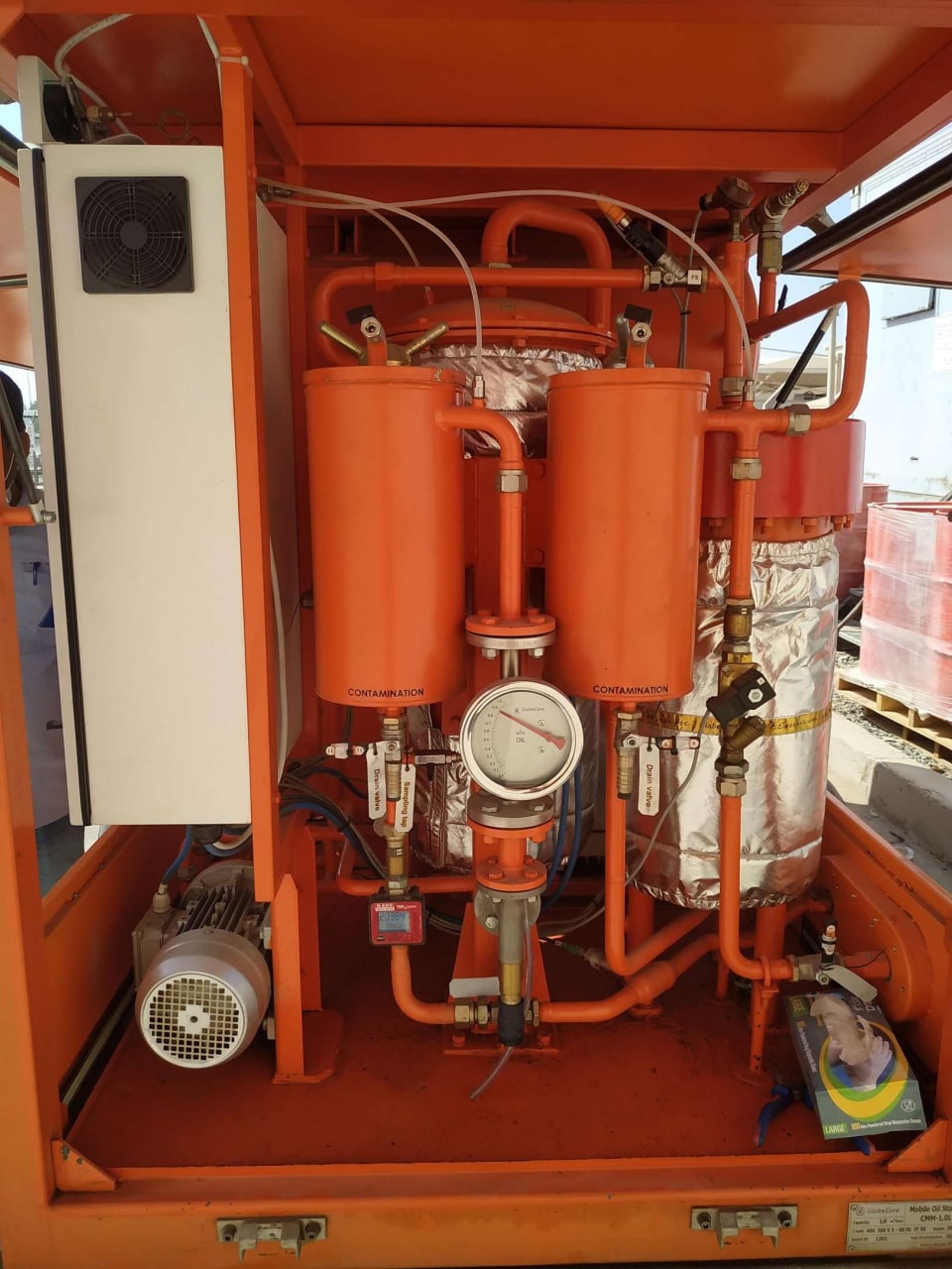The СММ-1Н unit is designed for drying, heating and filtration of mineral transformer oil, as well as evacuation of transformer tanks.